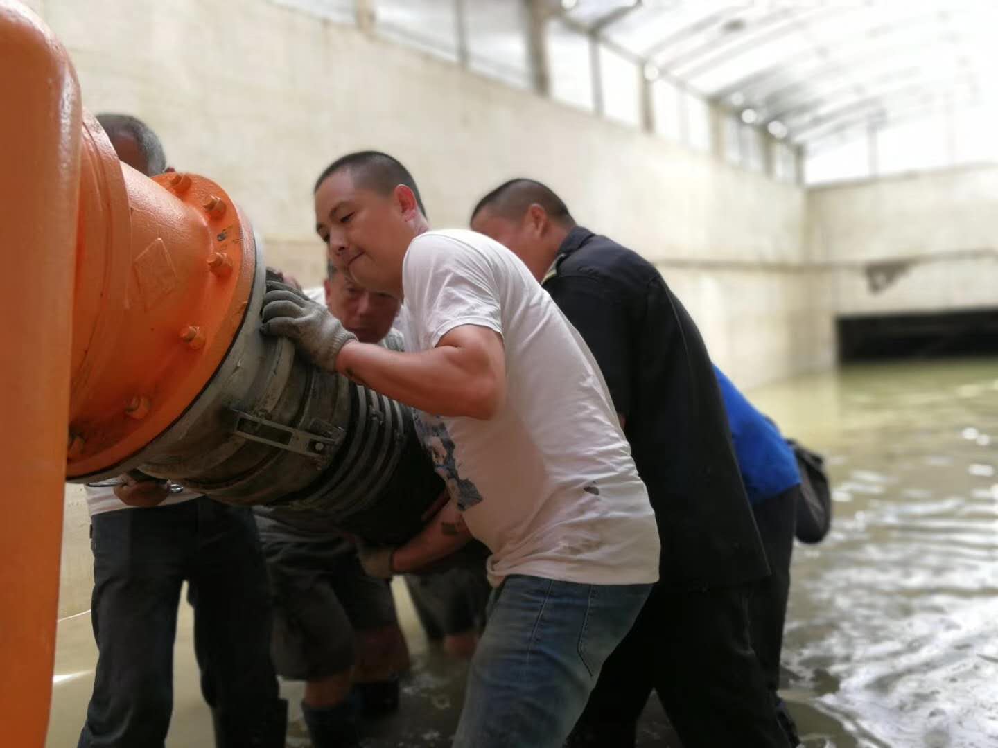 面对洪灾后的一片狼藉,项目立即组织开展一系列的自救工作,但各项工作千头万绪,仅靠项目人员远远不够,公司各项目人员主动请命加入到金海岸抗洪清淤工作中。仅两天时间,公司迅速集结300余人加入到灾后清淤工作中。