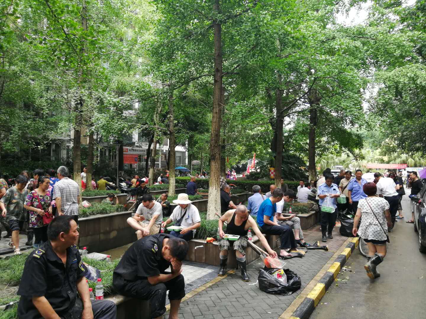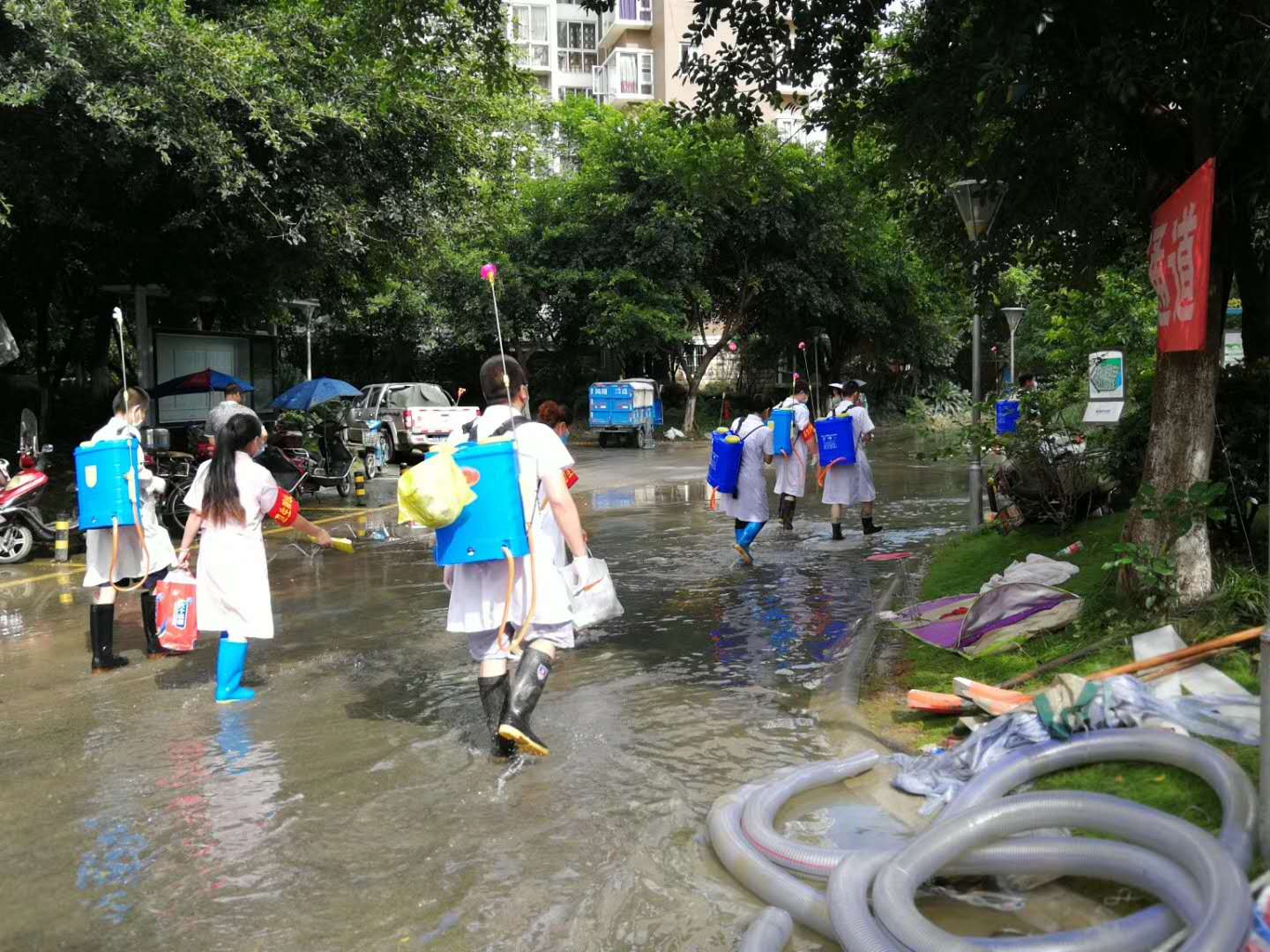 慰问物资及发电抽水设备等******批救灾物资进入小区