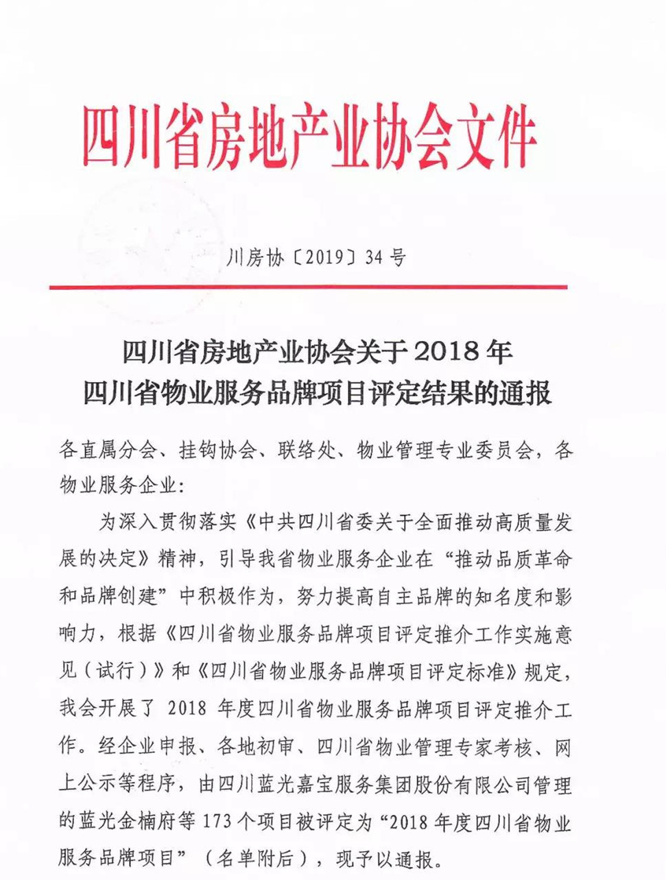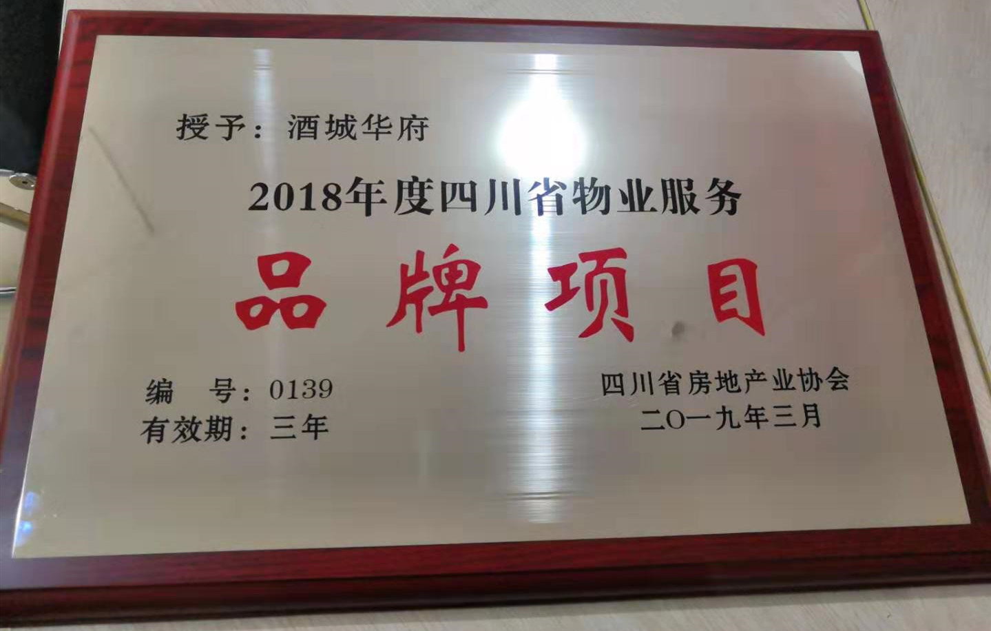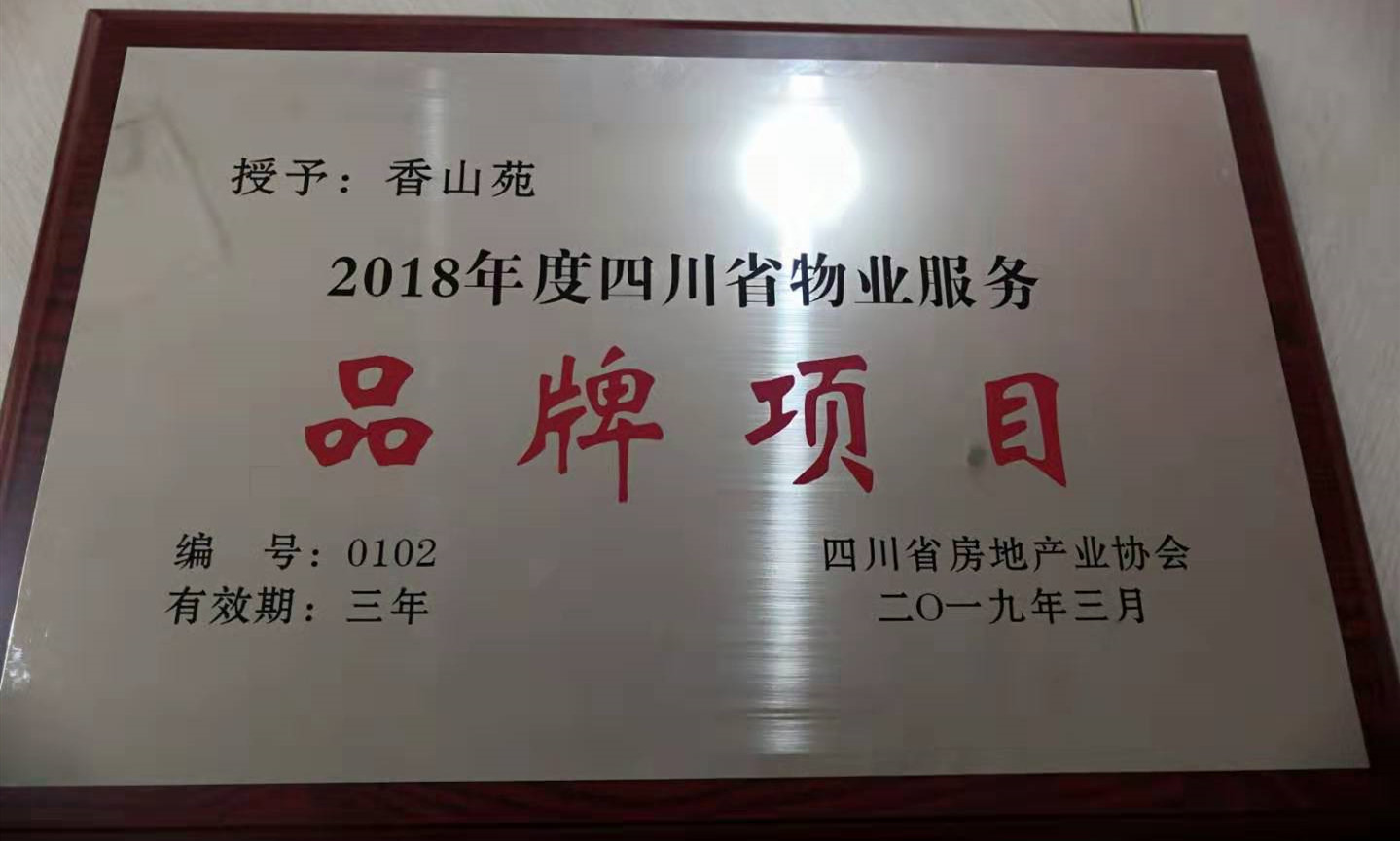 恭喜酒城华府、香山苑项目获得四川省物业服务“品牌项目”