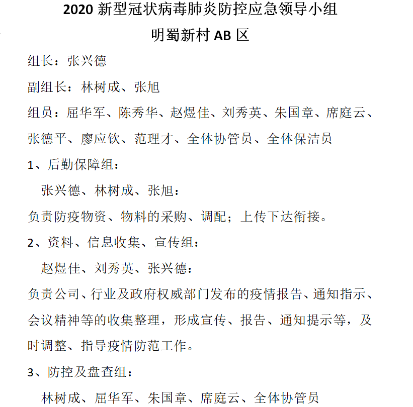 明蜀新村A、B区物业服务中心成立疫情防控领导小组