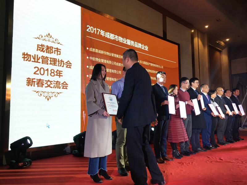 经市物协领导、专家对公司总部及边城香格里项目现场考评,对项目申请条件审查、专业测评、业主满意度调查、公众知名度调查和公示等评定程序,决定对四川省润无声物业发展有限责任公司等14家物业服务企业统一命名为成都市物业服务品牌企业,并于2018年1月26日,在市物协2018年新春联谊会中对荣获品牌企业的物业服务企业予以表彰。