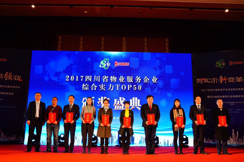 2018年1月19日,以“务实求新·变革强业”为主题的2017年四川省房地产业协会物业管理专业委员会通过对四川省数百家代表企业就管理规模、经营收入、服务质量、品牌影响等多维度研究,形成研究报告,并在会上公布了《2017年四川省物业服务行业综合实力TOP50强》名单 。